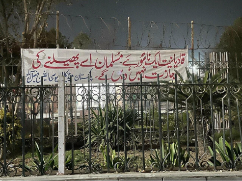 Anti-Ahmadi banner outside the Allied Hospital in Faisalabad: “Qadianism [Ahmadiyya] is an ulcer. Muslims shall not let it spread—Pakistan Medical Association Faisalabad.” Credits.